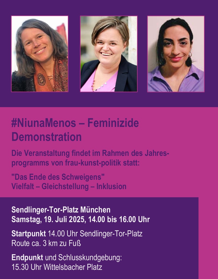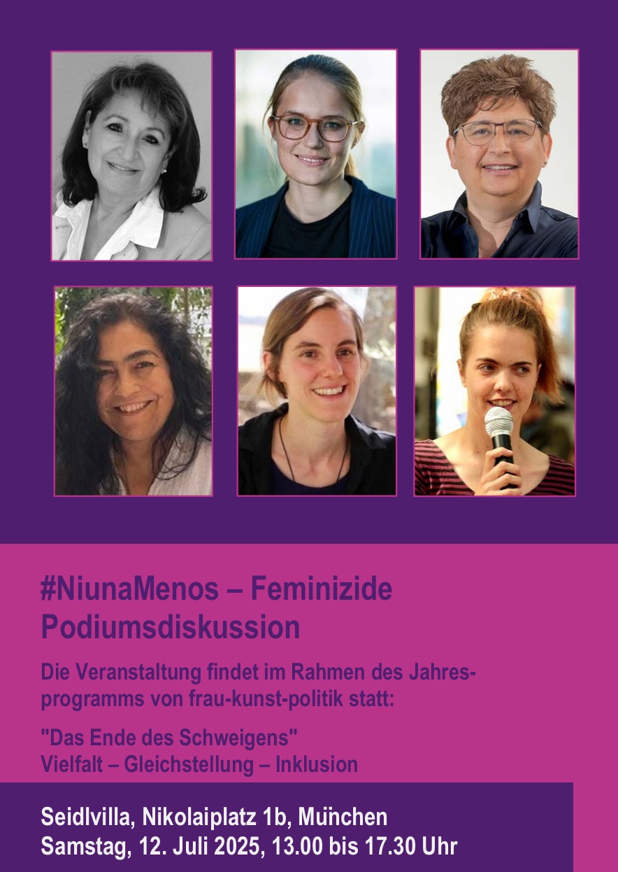 Info-Material 2025 Frauen in Führungspositionen – Eine vergleichende Perspektive zwischen China und Deutschland. Vortrag mit Diskussion #Niuna Menos – Feminizide Demonstration #NiunaMenos – Feminizide Podiumsdiskussion Download Medizin-Flyer Download PDF KATALOG 2025 Download PDF Programmübersicht frau-kunst-politik 2025 Download Mit Hannah Arendt durch den Alltag Download Katalog Ein zerstörtes Haus kennt keine Lust Download PDF Reihe Rassismus: Eine Geschichte der Ungleichheit 2024 Download PDF Mexiko in München Download PDF Katalog 2024 Download PDF Letzte Station Download PDF Heimaten der Töchter Download PDF Jineloji Download PDF Missbrauchte-Kirche Download PDF #miasanda Download PDF Politisches Wirken von Frauen im Kalten Krieg Download PDF Die Urkraft des Weiblichen
